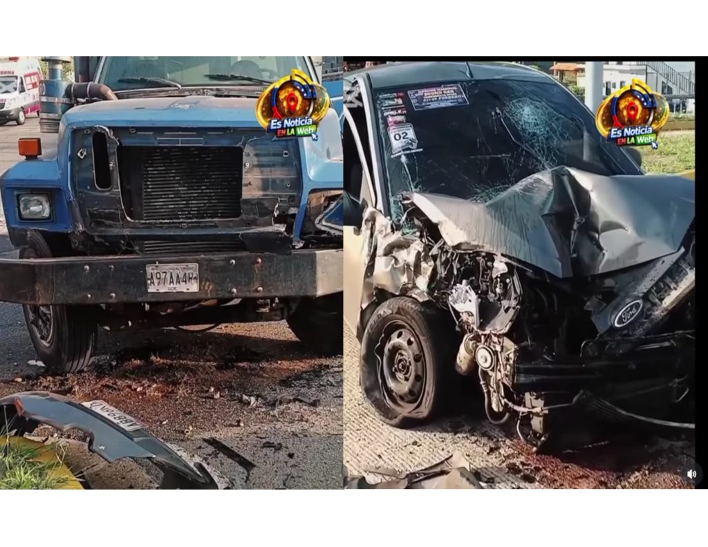 El incidente ocurrió específicamente en el punto del semáforo de la calle La Vega, donde colisionaron un vehículo particular, modelo Ford Fiesta de color gris, y un camión de volteo de color azul.