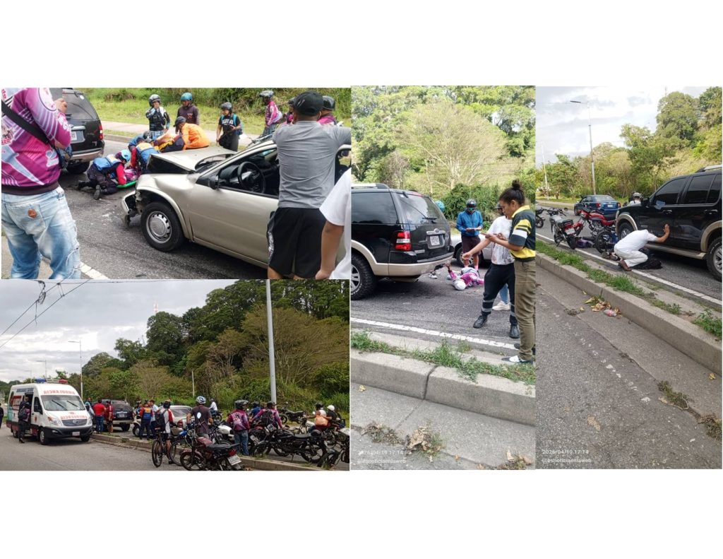 MÉRIDA – La tarde de este domingo 19 de abril, un fuerte accidente de tránsito registrado en la Avenida Monseñor Chacón, principal arteria vial que comunica las ciudades de Mérida y Ejido, dejó como saldo dos personas heridas y cuatro vehículos involucrados en un complejo suceso vial.